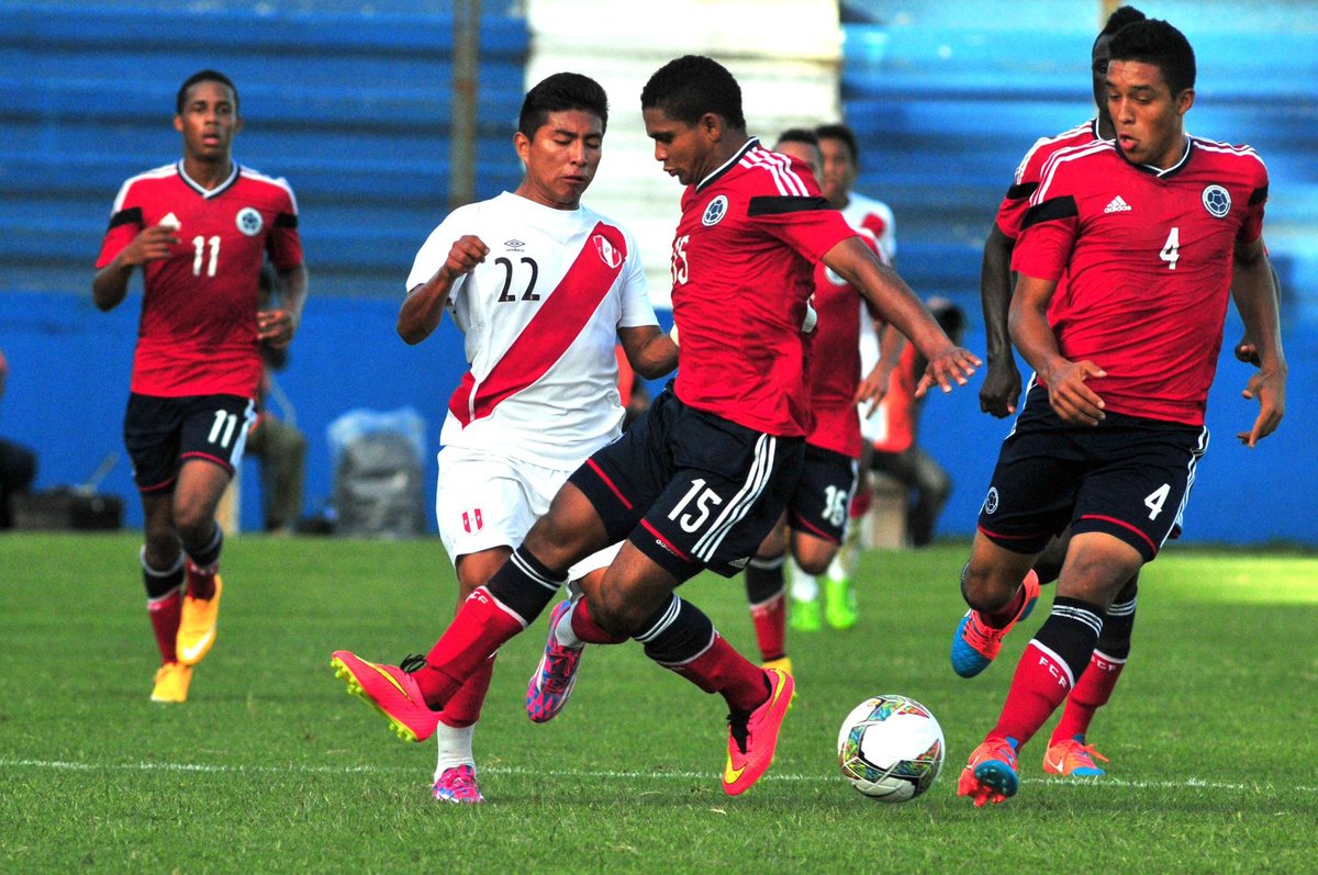 Goles: 23' Alexander Succar (Perú); 25' y 90'+ Jeison Lucumí (Colombia); y 39' Rafael Borré (Colombia).